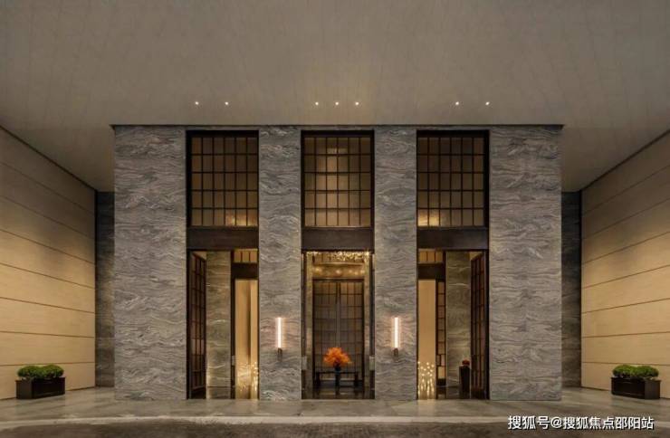 这是超10m挑高的酒店式归家大堂,水云纱石材和深色木饰面的沉稳,瞬间让心安静了下来。