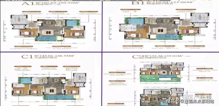 本项目除12号楼是一个单元以外,1~11号楼均为两个单元楼栋单元平层内为一梯两户,主力户型为建筑面积106~104平方米的两室两厅一卫,建筑面积119~122平方米的两室两厅两卫,建筑面积145~146平方米的三房两厅两卫,以及建筑面积153~155平方米的四房四厅四卫的上跃户型。