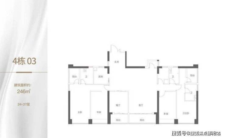 项目规划4栋住宅共261套,今年首开1栋高层住宅,197-237㎡四房大平层。