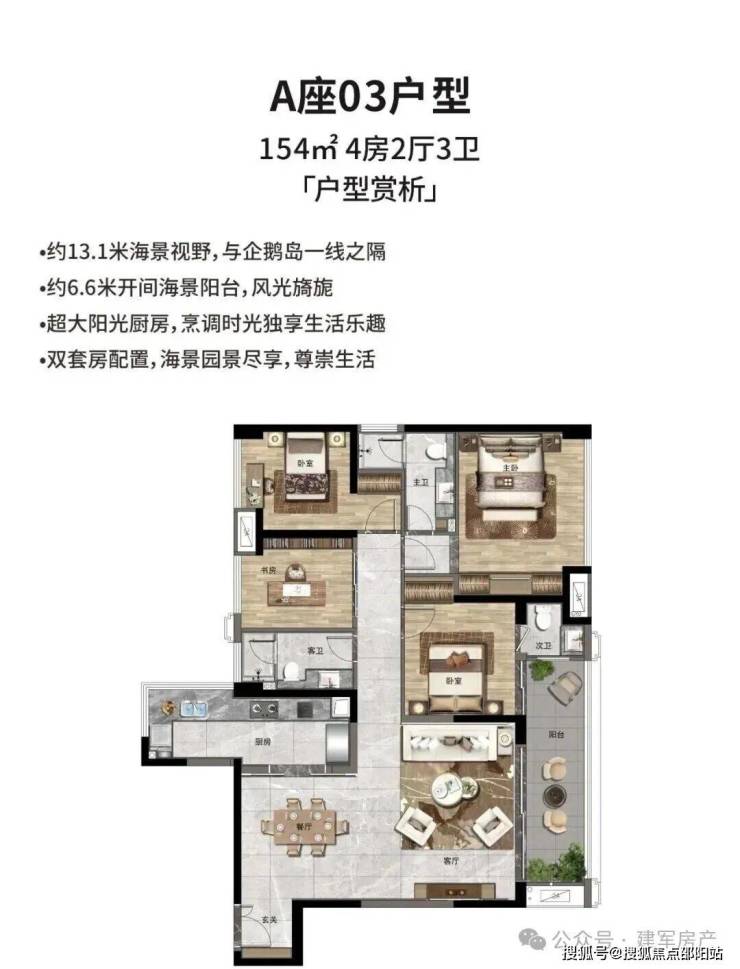 154㎡ 4房户型:单价:4.7万起、总价725万起