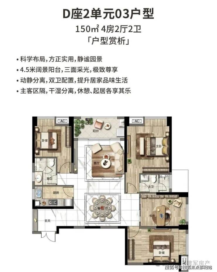 150㎡ 4房户型:单价:4.2万起、总价550万起