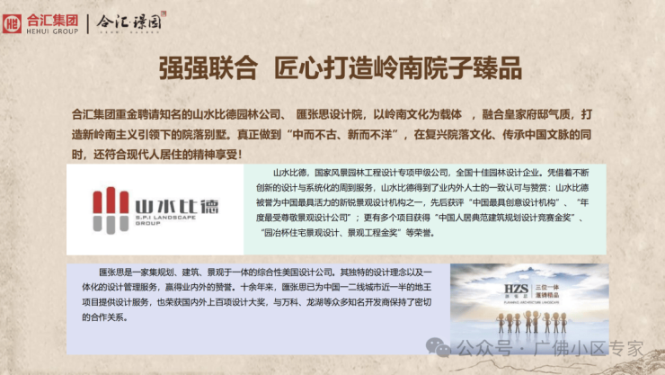 ✨ 【项目全览】✨ 合汇璟园项目总占地面积约6.18万㎡,是由增城本土第一开发商,大师级品牌设计。合汇集团,创始于2004年,是一家异军突起的新锐房地产企业,以房地产开发为主业,涉及商业经营、物业管理、矿产资源开发等业务领域。项目邀请了众多名大师联手设计,其中有来自美国的全球顶尖规划建筑设计公司【匯张思】设计。园林设计上邀请了著名的山水比德,打造顶级别墅项目。
