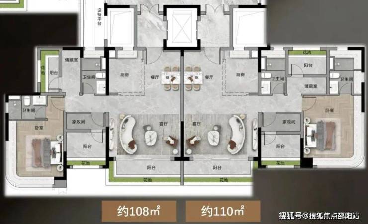 秘诀就在于它采用了双开门电梯,既能打造出私享电梯厅的效果,又节省了公摊,把空间利用到了极致,直接秒杀了市面上99%的项目。