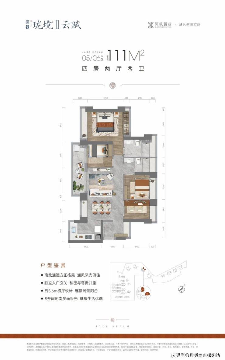 111㎡的4房2厅2卫,折后总价509-571万/套,单价4.61-5.15万/㎡。