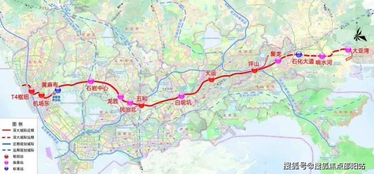 另外项目旁还规划有深大城际“龙胜站”,3站即可到达宝安机场东,该线路全线长约69.2公里,目前仅深圳段动工,是由宝安T4开往惠州大亚湾,途径宝安区,龙华区,龙岗区,终止坪山聚龙站,总设站11座,设计时速160公里,预计在2026年开通运营。