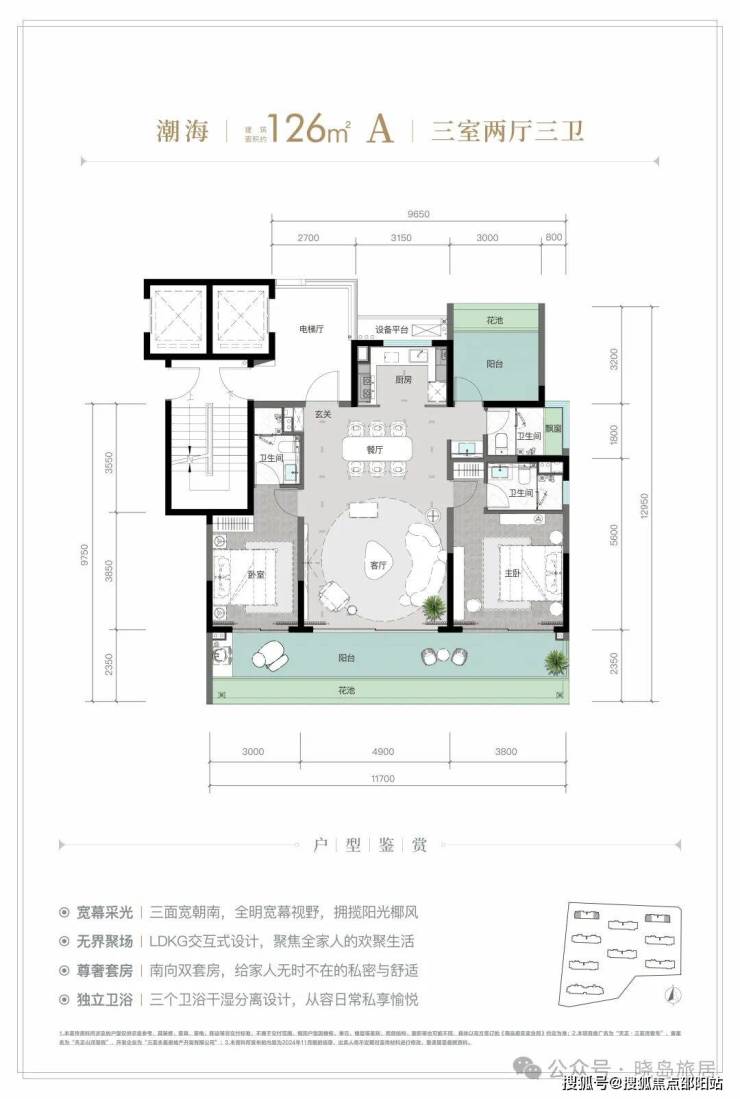 规划建面约 126-213㎡观海奢装大平层,以约 3.1 米阔尺层高拓宽空间尺度;部分户型创新打造 270° 全景飘窗主卧套、四开间朝南等设计亮点,全系高标奢装成品交付,重新定义高端舒居范式。