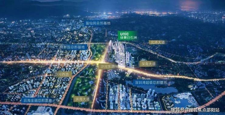 在伦敦、纽约这样的超级城市,其城市主轴的黄金分割点上均屹立着城市超级影响力的项目,如伦敦金丝雀码头、纽约中央公园,而深圳的发展主轴深南大道自东向西,绿景白石洲正处于黄金分割点之上。项目位处城市GDP第一的南山区,深南大道与大沙河科创走廊十字交汇点,代言深圳发展高度。