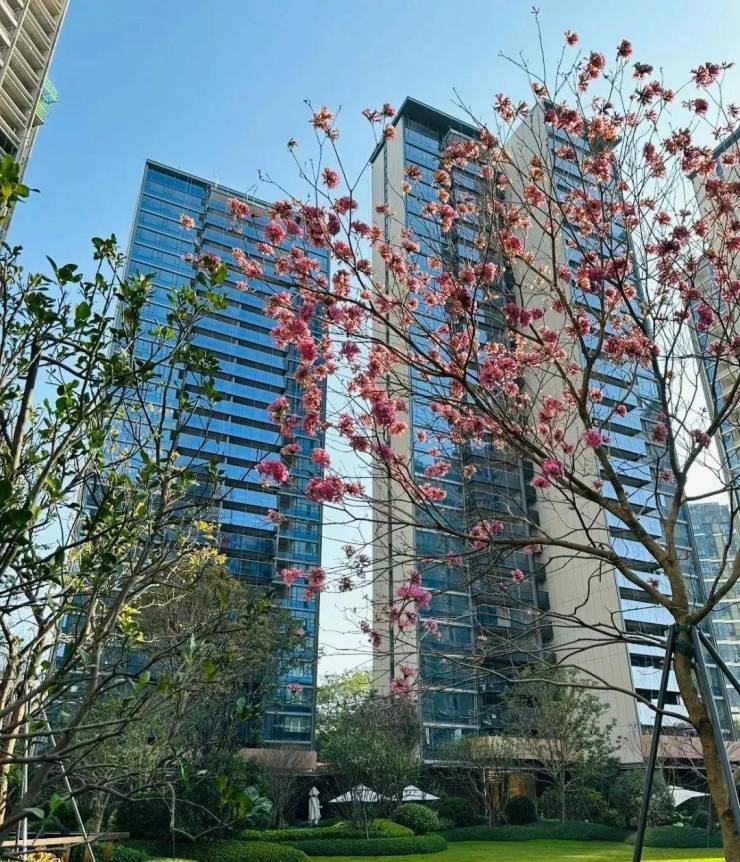 越秀天河和樾府项目位于天河北梅花园板块,距离珠江新城直线距离仅5公里,从这里可一路串联广州大道北、天河北、珠江新城等商圈,小区距离地铁3号线梅花园站步行约800米,附近还有在建设的18号线北延段京溪路站,小区旁还配建了幼儿园以及九年制学校,由华阳小学+广州中学管理,预计今年就能开学,周边配套也挺成熟,居住烟火气很浓,综合来说还是不错的,毕竟在天河来说,能满足教育好+配套成熟+有地铁+大花园的楼盘,也没几个,早期项目也开放了实体园林,玻璃幕墙加上围合式园林