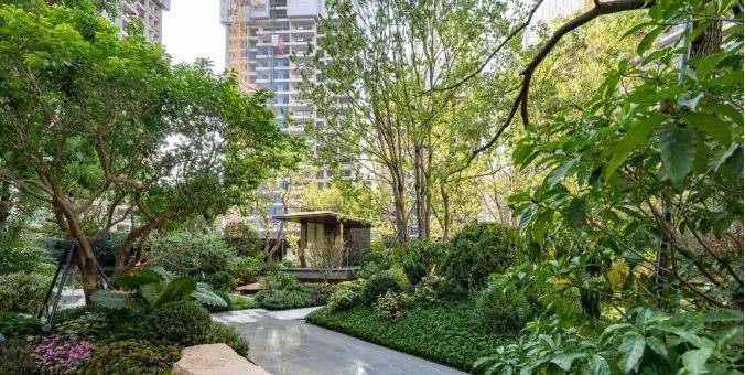 一方面,是对圆形的利用,因为圆天生有聚合效应,这给了小区凝聚力。另一方面,则是禅意空间,木栈道、几块石头,几棵树,就能营造出这样的氛围,但看似随意的摆放,其实大有讲究。