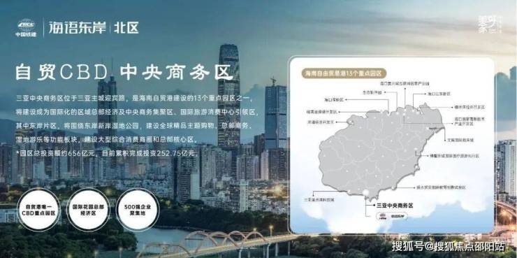 中国铁建・海语东岸北区坐落于三亚 CBD,这一区域是海南自贸港建设的重点园区之一,将发展为国际化的区域总部经济及中央商务集聚区、国际旅游消费中心引领区。