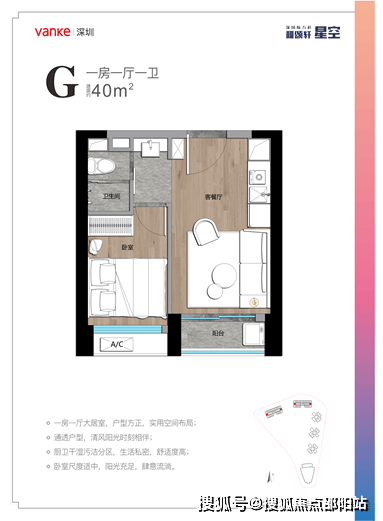 𝟒𝟎㎡1房1厅:总价140-155万,月租金约5000-5500元