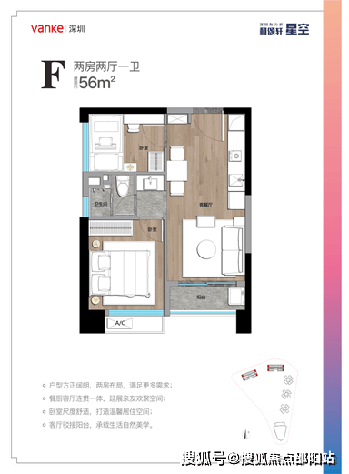 𝟓𝟔㎡2房2厅:总价179万起,月租金约6000-7000元