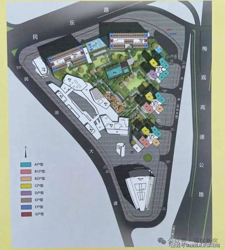 万科和颂轩由深国际联合置地与万科共同开发,位于龙华梅林关口民治大道与民乐路交汇处。项目为综合体业态,涵盖住宅、公寓、写字楼及商业,总建筑面积约44.7万㎡,绿化率30%。