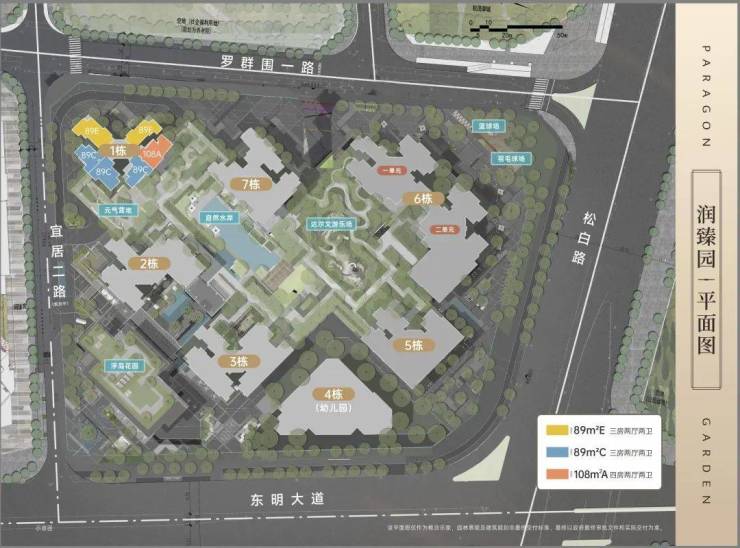 华润润臻园,由华润集团打造,总占地面积约2.98万㎡,总建筑面积约28.6万㎡,计容建筑面积约21.45万㎡,容积率7.19,绿化率30.01%,共由7栋总高26-57层高的住宅组成,也是光明区域内最高的天际住宅,其中1栋住宅26层,2栋住宅47层, 3栋住宅52层,5栋住宅52层,6栋1单元/2单元住宅52层,7栋住宅57层,4栋规划1所9班制幼儿园。