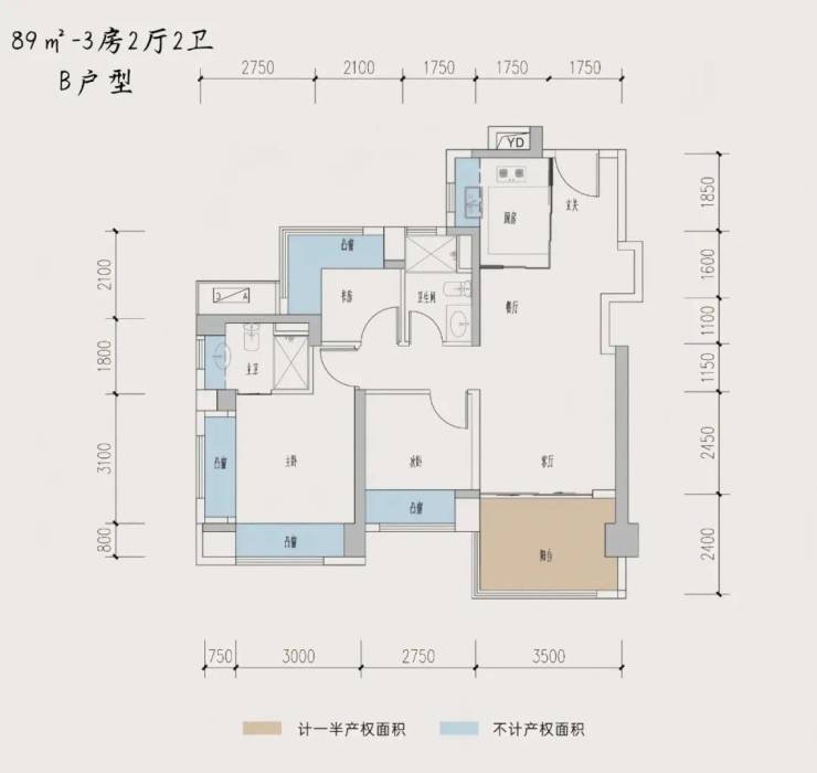 这次2栋直接顺卖开盘,这次2栋优惠是95*95*99折的折扣,综合约8.93折,折后均价3.57万/㎡,折后单价3.21-4.18万/㎡,总价在283-527万/套。89㎡的3房2卫,南北通透,折后总价285-304万/套,折后单价3.21-3.41万/㎡。