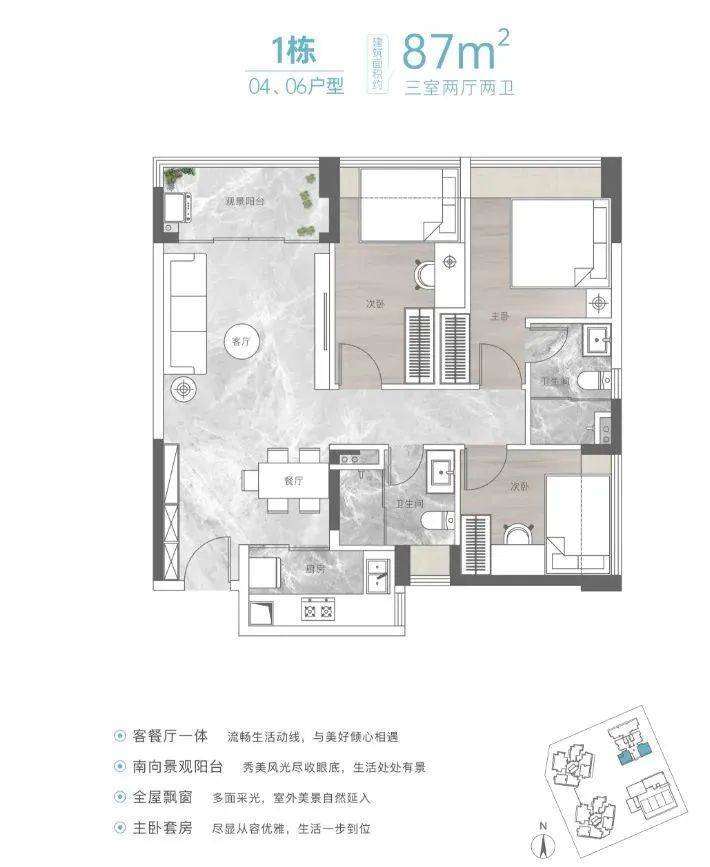 87-93㎡3房2卫478-596万 单价5.4-6.4万