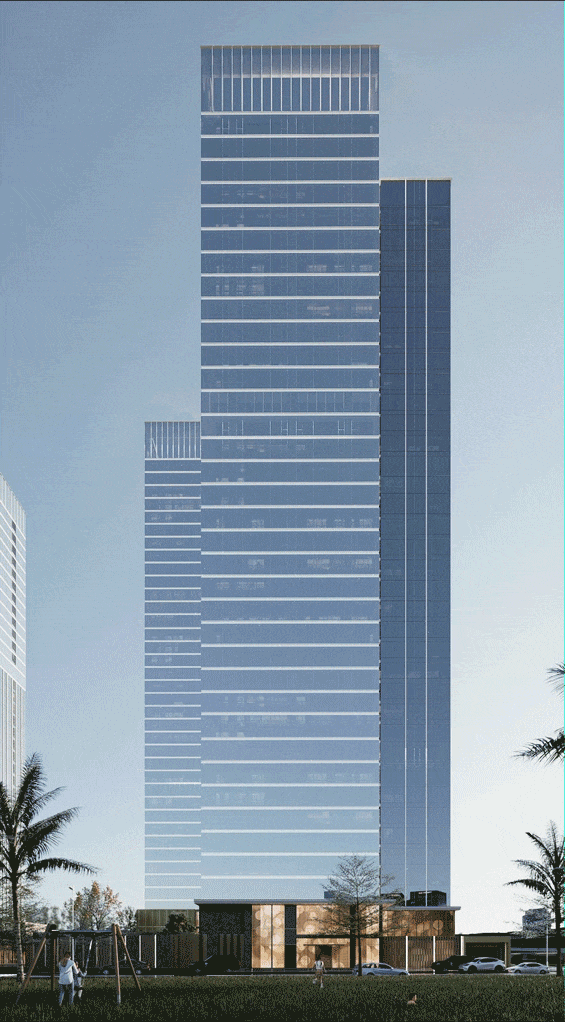 其中A、D地块为写字楼,剩下的B、C、E、F地块主推的是公寓产品,将首推C地块的C2栋,35层高,3梯6户设计。