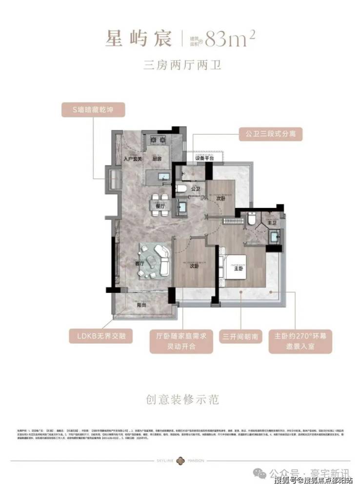 建面约83-133㎡3-4房宸式美学新著,LDKB巨幕方厅,跑道式景观阳台,小家化星级酒店主卧套房,270°环幕全景舱,客厅次卧无剪力墙灵动设计,实现超高实用率,每一户皆是颐安“超新一代作品”的匠心宣言。