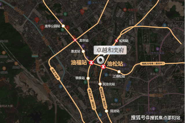 项目直线距离约200m油松站&约400m油福站(规划中),紧邻龙华大道、工业路,串联梅观快速、人民路、布龙路等多条主干道。