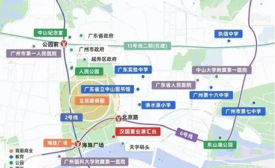 项目楼下100米就是6号线北京路站,另外步行600米就是2号线以及6号线交汇站海珠广场站,珠江新城、琶洲、白鹅潭皆在项目8公里范围内。
