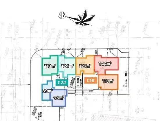 梯户比:C1栋2梯3户,C2栋2梯4户