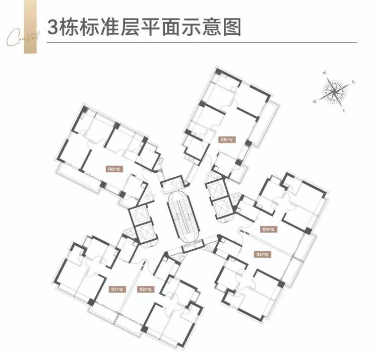 3栋:4梯6户,层高3.1米,01-04户型100平3房2卫,05-06户型120平4房2卫