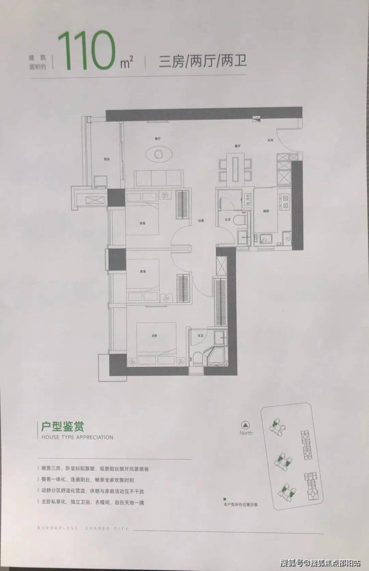 :卧室标配飘窗,观景阳台延伸视野;餐客一体化连通阳台,全家欢聚更从容;动静分区设计,休憩、活动互不干扰;主卧带独立卫浴与衣帽间,私享静谧天地。