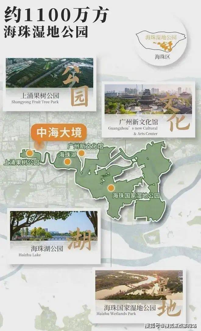 海珠湿地1100万方:包括项目对面40万方上涌果树公园、海珠湖、海珠国家湿地公园。
