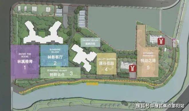整个滨水园林包括了5大功能区,主入口的林溪港湾、拾阶云台、漂浮会客庭院、亲子儿童乐园(即溪谷花园)、配置羽毛球和篮球场的悦动之港,真正做到了一步即一景。