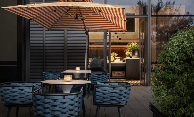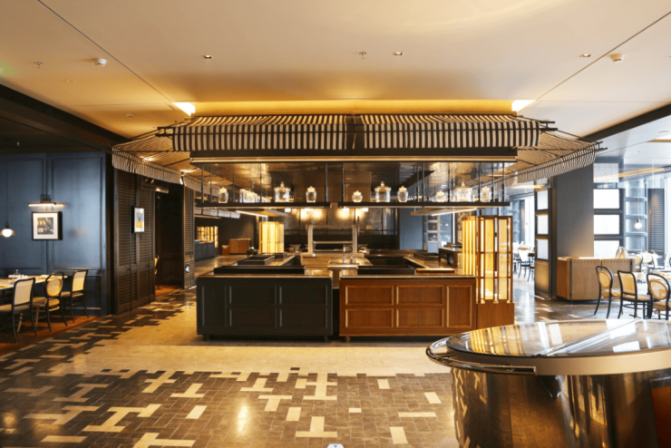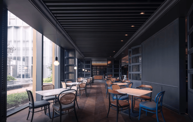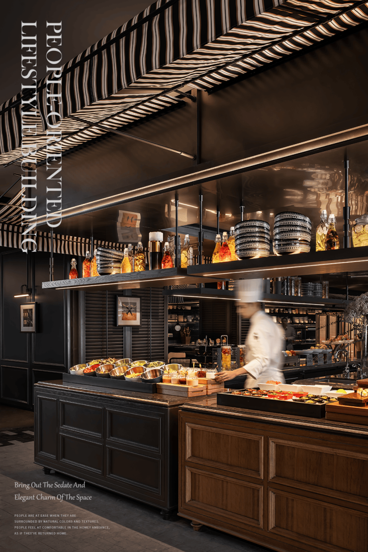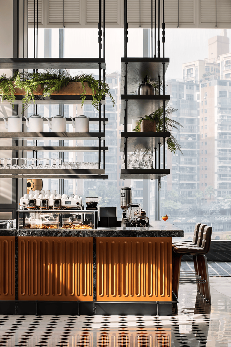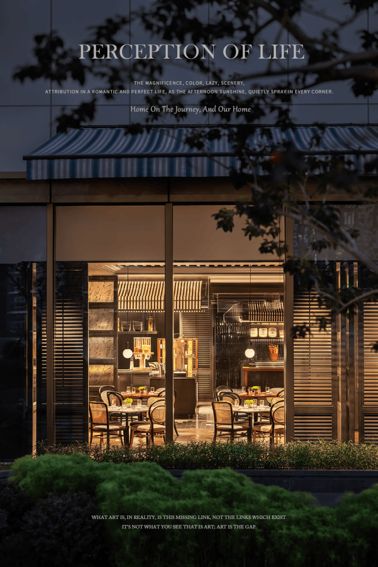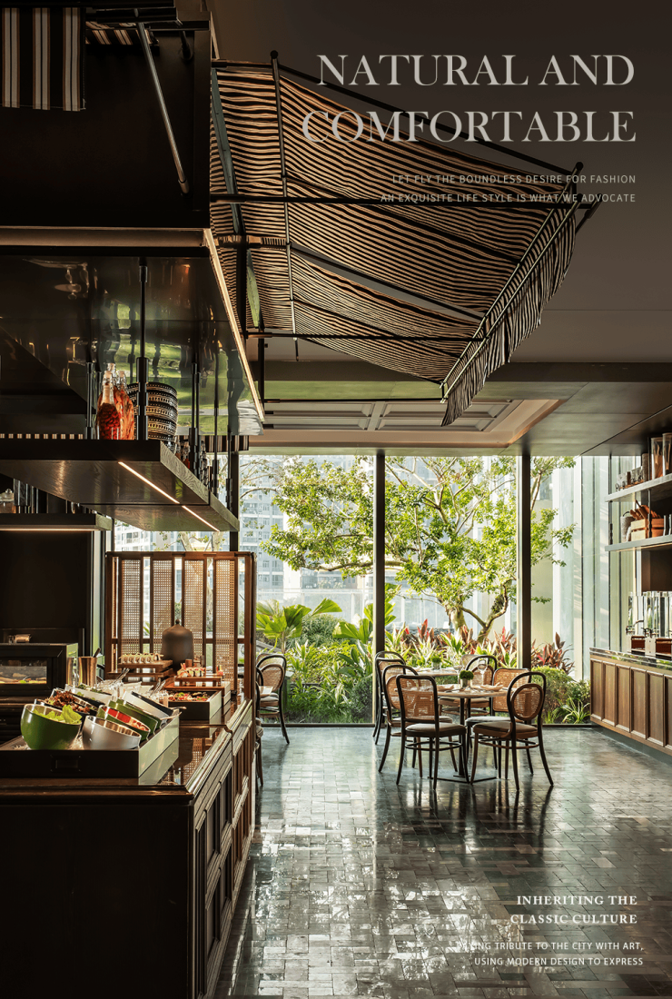 酒店一层的Le Scoop冰雪甜吻餐厅将室內活动延伸至戶外花园,让建筑与自然相融合,让自然的气息与烟火之间建立交汇相洽。让城市与建筑空间更加贴近,增加空间停留点,让顾客在探索过程中获得乐趣。花园里的下午茶,亦或漫步感受微风,岭南的悠闲法式慵懒相生相伴。
