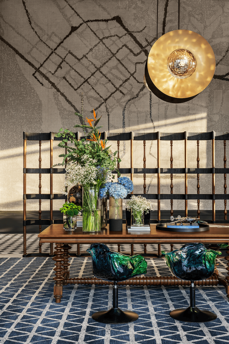 设计师将大堂中央与前台旁侧的墙面设计为深圳前海片区的地图,以此描摹城市脉络。开放式布局在光线自由流动的同时增强了空间的开阔感。