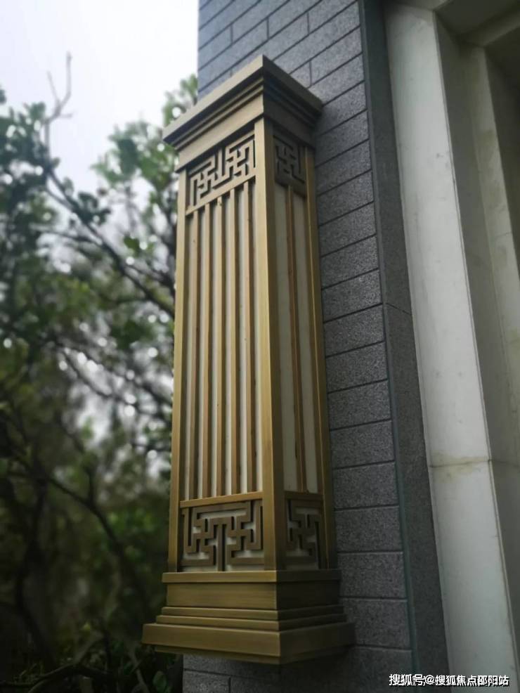 壁灯:院门两侧的铜灯,纹饰由传统的“万字纹”演化而来,寓意万福万寿绵长不尽。
