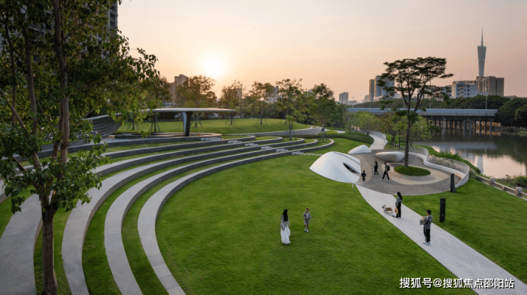 为破解城市核心区“繁华与静谧”的悖论,项目在交付区园内全冠移植了400多棵乔木,精心构筑起“都市溪谷”景观;而移目花园之外,广州母亲河珠江之水被“引入”园区,衍生出超2万平方米的滨水公园,形成CBD稀缺的亲水驳岸布局,让业主既能推窗尽享绿意盎然,又可便捷地前往国际滨水生活区享受繁华的静谧。这种“缝合城市”的实践,正如建筑大师简•雅各布斯所言:“真正的城市活力,源于功能的混合与步行的愉悦。”