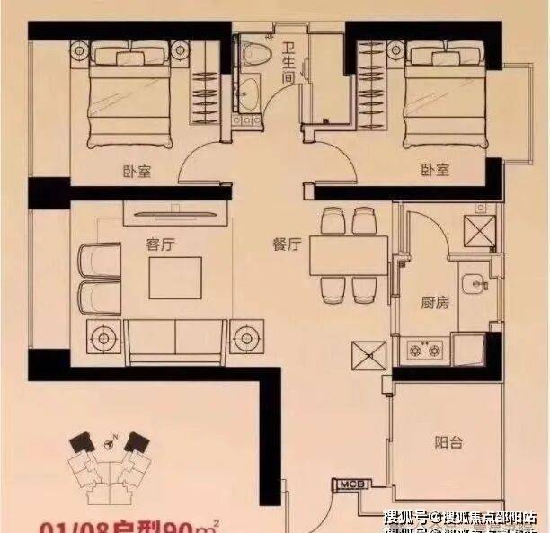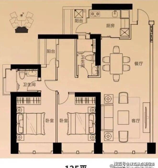 面积:85-89㎡2房1卫,90㎡2+1房1卫,125㎡3房2卫