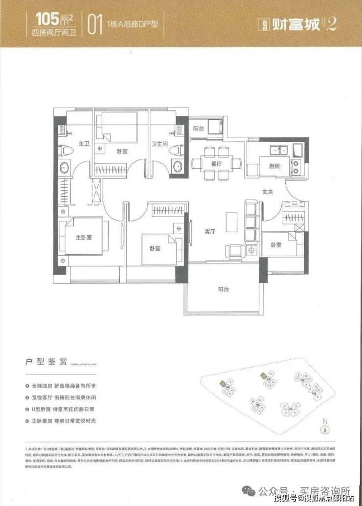 财富城弘德苑:占地面积约2.16万㎡,总建筑面积约18万㎡,计容建筑面积约14.2万㎡,容积率6.58,绿化率35%,共由1栋6座住宅组成,其中1栋A座住宅52F,1栋B/C/D座住宅54F,1栋E/F座住宅32F