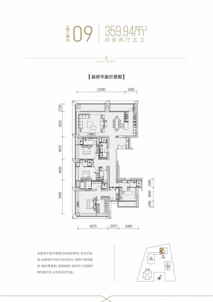 【建面约360平4房全套房2厅5卫】