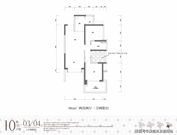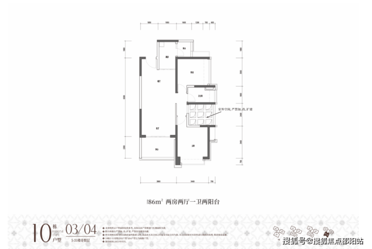 10栋03/04户型,建面约86㎡,原始结构是两房两厅一卫两阳台,奇数层和偶数层都是卧室出阳台,主卧与公卫中间有一块镂空的地方,搭板的话改个三房没啥问题。