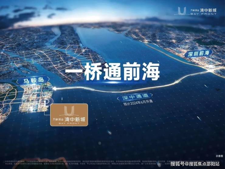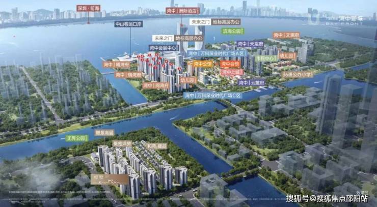 万科深业湾中新城,是由万科与深业双强联袂打造、坐落中山马鞍岛的约 175 万㎡滨海超级综合体,距深中通道出口约 3 公里,20 分钟直达前海,占据深中同城核心门户。项目以 “海陆空轨” 四维交通为基底,配建国家一类客运口岸、会展中心与 “未来之门” 地标双塔,自带 9.3 万㎡湾中水街,商业、文旅、口岸功能高度聚合,自成一站式生活闭环。