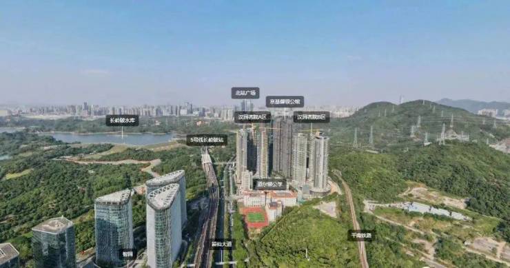 项目位于南山西丽,留仙大道旁,地铁五号线长岭陂站南侧50米,属于西丽大学城边缘位置。