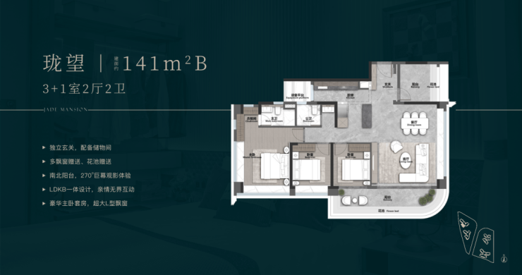 /珑望(141㎡B):四房设计,带独立书房,空间宽敞,改善属性明显。