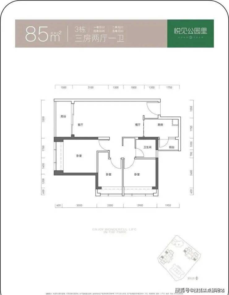85㎡的3房2厅1卫,折后总价324-348万/套,单价3.8-4.08万/㎡。