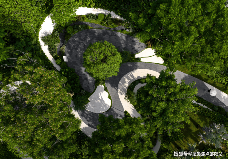 通过立体景观层次、流线造型语言创造“热带雨林”的景观体验。