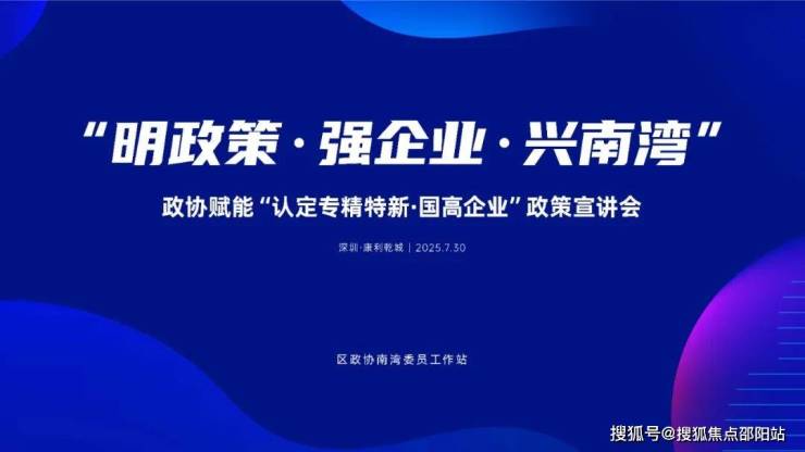 7 月 30 日下午,“明政策・强企业・兴南湾”—— 政协赋能 “认定专精特新・国高企业” 政策宣讲会在康利乾城园区举行。区政协领导刘峰、方光都,南湾街道领导欧坤锋、胡光校。政协委员及辖区高新技术企业、科创企业代表齐聚,围绕专精特新与国家高新技术企业认定展开深度交流。