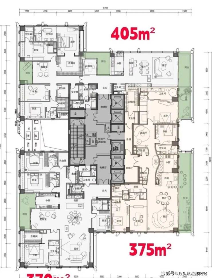 •高区户型(51-65层):405㎡五房两厅五卫旗舰户型,全玻璃幕墙外立面,270°环幕视野,直瞰深圳湾全景与人才公园绿意,私享电梯厅+家政套间+家庭厅豪华配置。