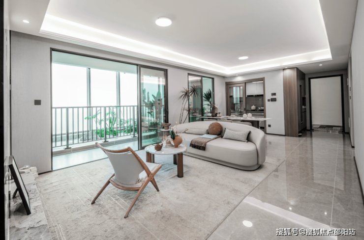 再看朝南的客厅开间,达到约3.7米,通过拉宽客厅面宽,阳光肆意进屋,从室内望向室外的风景,视野无敌。