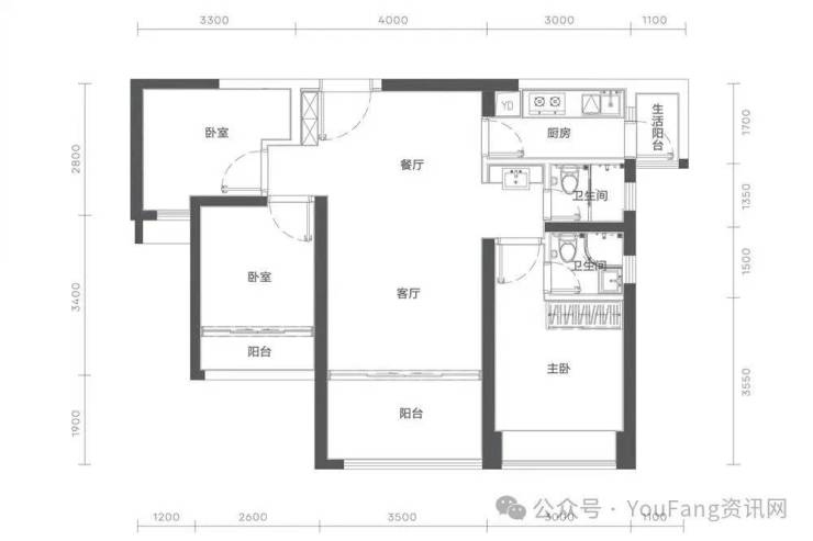 【建面88㎡3居】800万-分布于1栋C座 ,2梯4户,层高3.00米,总楼层31F