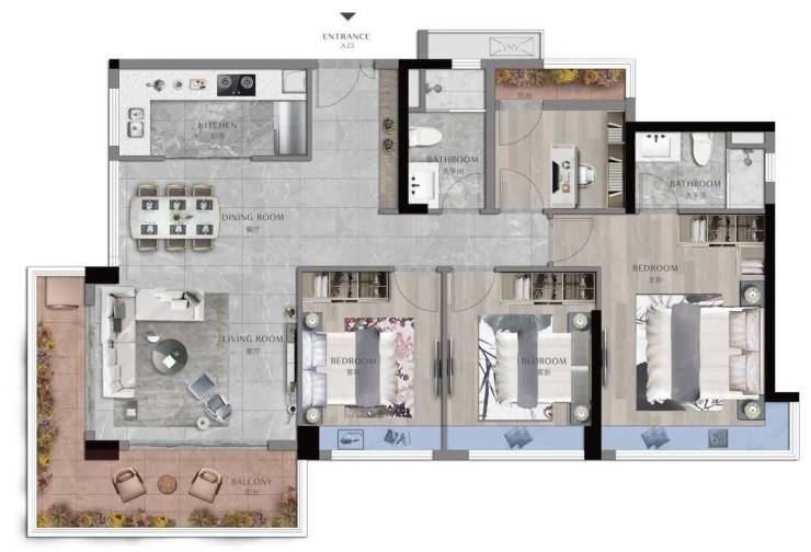 120㎡三房两厅两卫