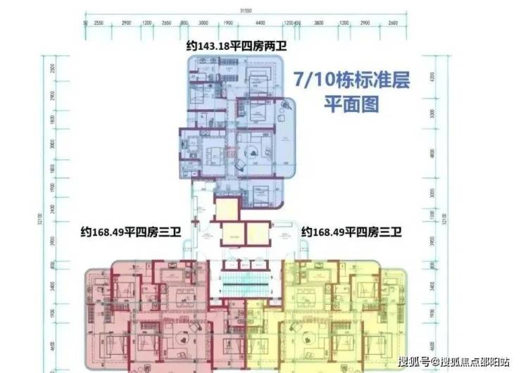 1、6、7、10、11、12栋采用板楼设计,3T3户,约140-168-190㎡左右4房,也有部分看海单位,上车门槛更低。