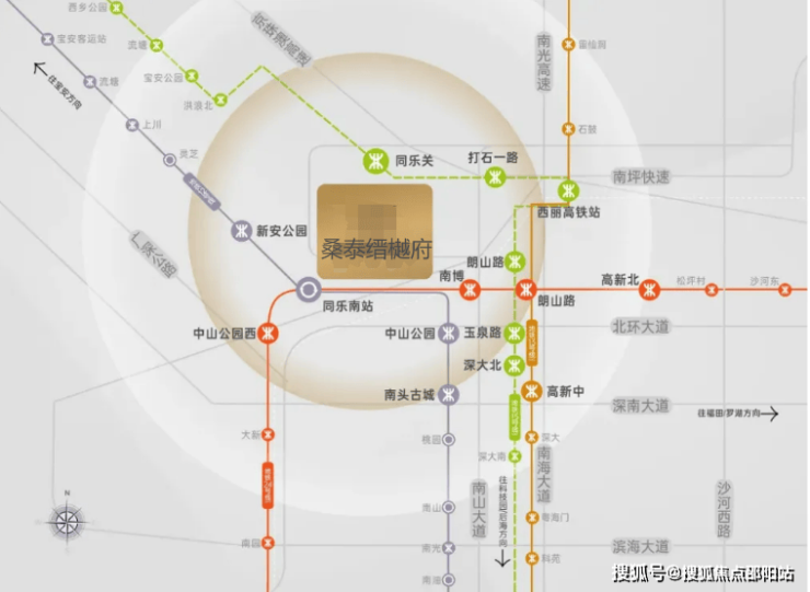 距离约700米可达12号线同乐南地铁口,1站中山公园5站科技园;未来还有15号线南山核心环线(在建),串联前海、南山和宝安核心;以及24号线(规划中),开通后4站抵达高新园。