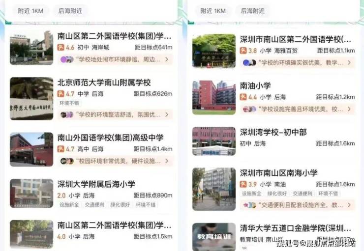 周边有北师大附小,南山外国语学府学校,南二外学府中心南油小学,深圳大学附属后海学校,北师范大学附中,深圳湾学校等。